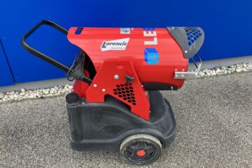 Mobiles, geräuscharmes Strahlungsheizgerät mit justierbarem Konus für direkte Bestrahlung bei geringer Luftbewegung. Kann mit einem Thermostat, Hygrostat oder Timer verbunden werden. Ölbrenner BM2, hochwertige Kraftstoffpumpe, elektronische Photozellen-Flammensicherung, Lasthaken. Netzkabel 1,5 lfm mit Stecker, AISI 430 Edelstahl Brennkammer. Kühles Außengehäuse durch Luftumwälzung über die gesamte Oberfläche des Konus. Getimter Gebläsenachlauf. Brennstoffzuleitungen Gummi mit Metallüberzug. Stoßfester Polyethylen-Tank. Technische Daten: – Kapazität: 25,8 kW (22185 kcal/h), – Brennstoffverbrauch: 2,04 kg/h, – Tankinhalt: 43 l, – Netz: 230 V/1 ph/50 Hz, – Motorleistung: 0, 11 kW, – Abmessung (LxBxH): 895x532x808 mm, – Gewicht: 42 kg.