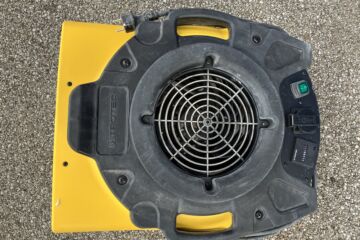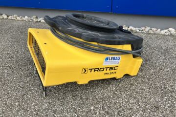 Das Gerät ist für einen sehr hohen Luftstrom ausgelegt. Es kann sowohl zur Teppich-, Gebäude- oder Estrichtrocknung als auch zur Belüftung schwer zugänglicher Zwischenräume eingesetzt werden. Durch die hohe Luftzirkulation kann das Gerät zusätzlich zur Kontrolle von zu hoher Luftfeuchtigkeit eingesetzt werden. Vier Trocknungspositionen können für verschiedene Einsatzmöglichkeiten im Rahmen der Oberflächentrocknung verwendet werden. Inkl. Servicesteckdose, Betriebsstundenzähler, aufklappbarem Standbügel und Transportgriffen. Technische Daten: – Luftmenge: 1150 m³/h, – Netzanschluss: 230 V/50 Hz, – Leistungsaufnahme: 0,17 kW, – Stat. Luftdruck (frei aufblasend): max. 290 Pa, – Schutzart: IP 44, – Abmessung (LxBxH): 520x450x255 mm, – Gewicht: 11 kg.