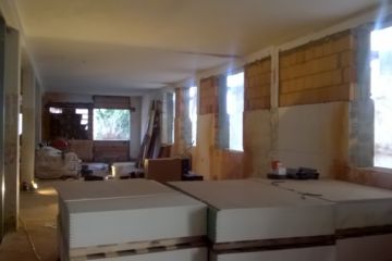 Mittlerweile sind die Baumeisterarbeiten weitgehendst abgeschlossen. Auch die Trockenbauarbeiten neigen sich dem Ende zu und es konnte bereits mit dem verlegen des Estrichs begonnen werden. Durch den straffen Zeitplan von nur knapp 9 Monaten, läuft die Baustelle auf Hochtouren. Bereits im Sommer 2018 werden die zukünftigen Bewohner ihr neues Heim beziehen können.