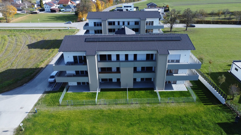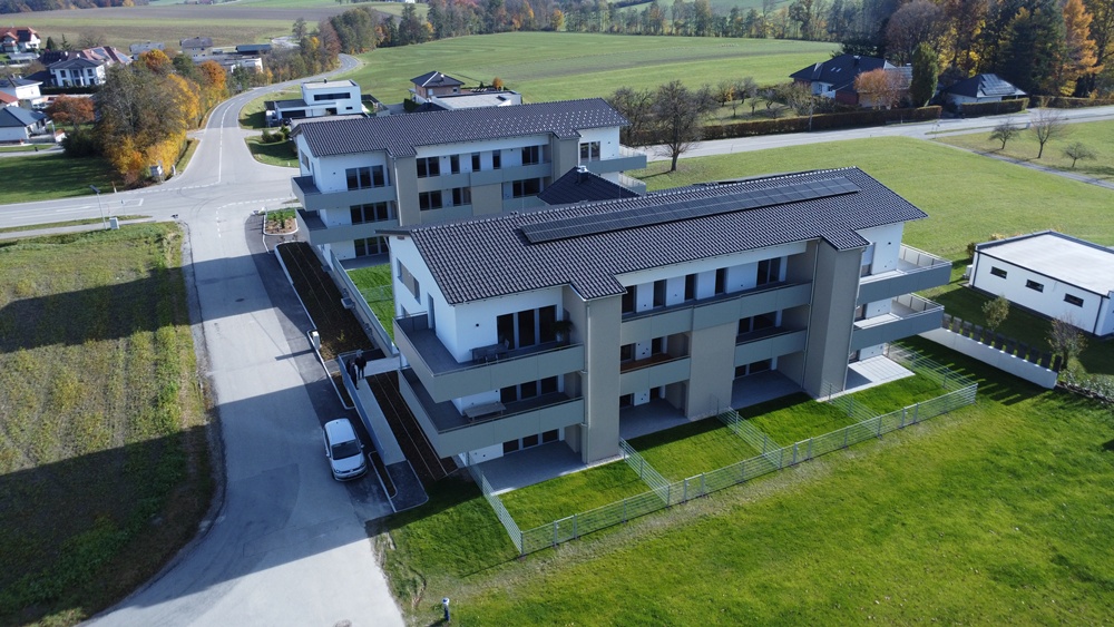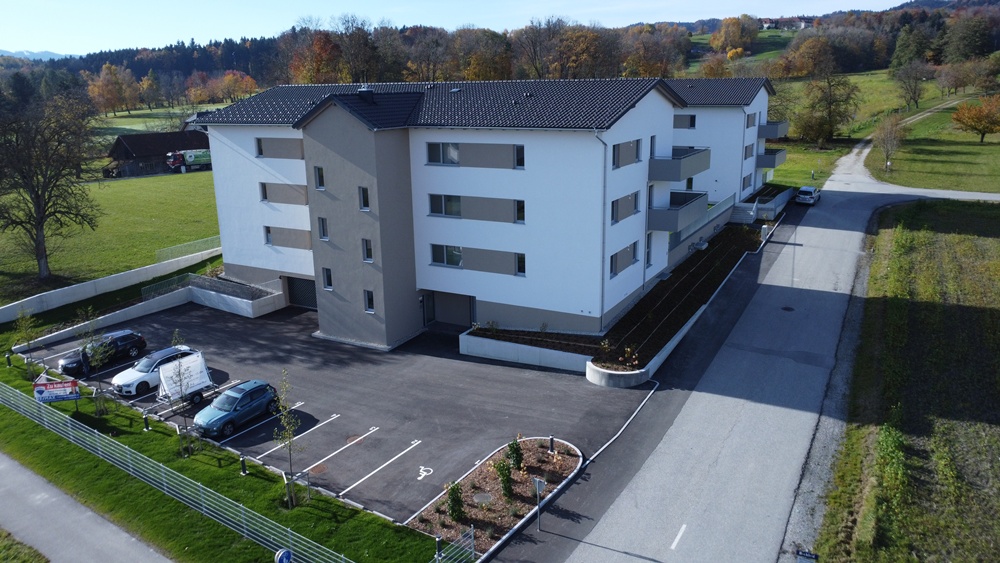 Am Ortsrand von Haag am Hausruck, in Aubach, errichten wir im Auftrag eines Kunden 22 freifinanzierte Eigentumswohnungen mit einer Wohnfläche zwischen ca. 57 m² und ca. 116m².